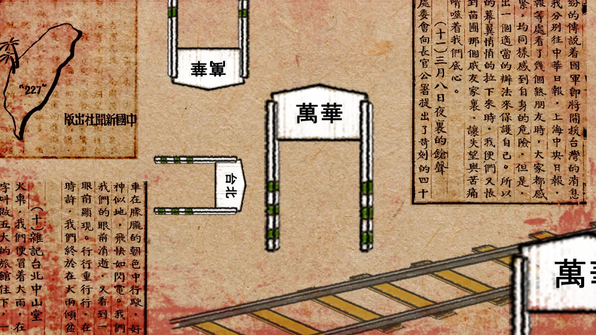 夜半,大概在10點半鐘的時候,他忽然從中山橋那邊,聽到一排排的槍聲,緊接著,在圓山公園,和東門町3、前日本總督府一帶,又先後響起了機關槍與步槍混合的聲音。他知道情勢不對,便連忙將我們一個個的喊起來,並立即將電燈關上,頓時黑暗便罩滿了整個的房間。