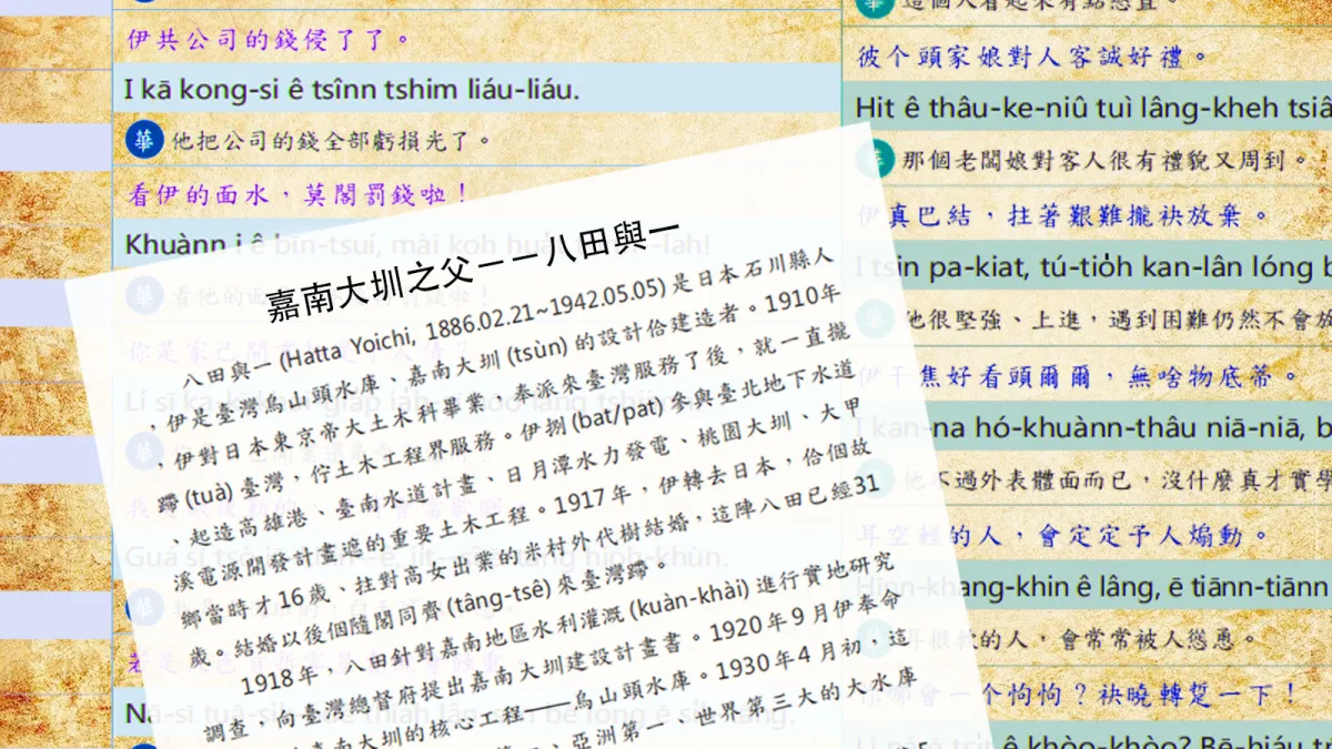 不幸身處日據時代的連雅堂,曾在〈臺語整理之頭緒〉一文提到:「余臺灣人也,能操臺灣之語,而不能書臺灣之字,且不能明臺語之義,余深自愧!夫臺灣之語,傳自漳、泉,而漳泉之語傳自中國,其源既遠,其流又長;張皇幽渺,墜緒微茫,豈真南蠻鴃舌之音,而不可以調宮商也哉?余以治事之暇,細為研求,乃知臺灣之語,高尚優雅,有非庸俗之所能知,且有出於周、秦之際,又非今日儒者之所能明,余深自喜!」連雅堂整理臺語,後又完成《臺語考釋》一書,目的就是對抗日本殖民統治,藉著推行臺語讓臺民不忘漢民族立場。