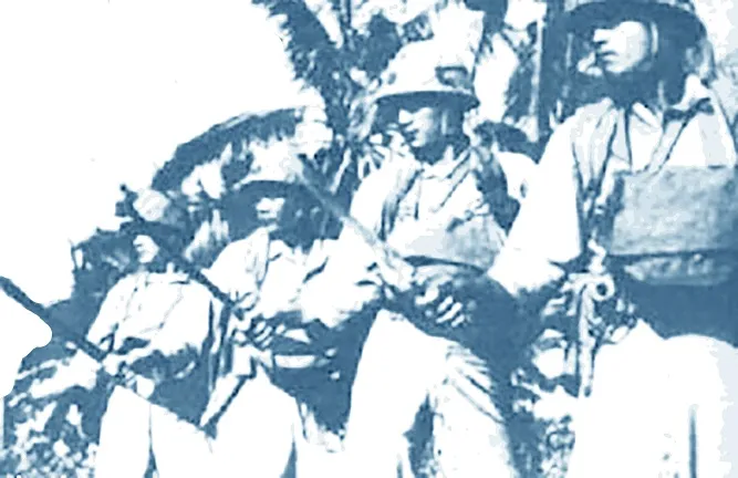 日據時代,日本殖民者在臺灣利用「皇民化運動」,將不少臺民洗腦成甘願為軍國主義奉獻的奴僕。此照片即1943年由當地公務員組成的「北斗防衛團」,於「北白川宮能久親王御舍營之址」紀念碑(位於今臺灣省彰化縣北斗鎮)前留下的合照。(圖片來自「國家文化記憶庫」網站)