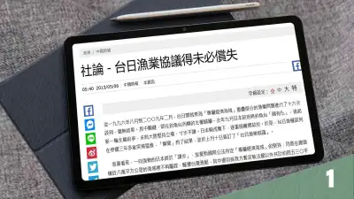 《臺日漁業協議》的代價今天是割讓臺澎及其附屬島嶼(包括釣魚臺列嶼)的《馬關條約》兩甲子(編按:誤,應是119年)紀念日。雖然臺澎已於1945年